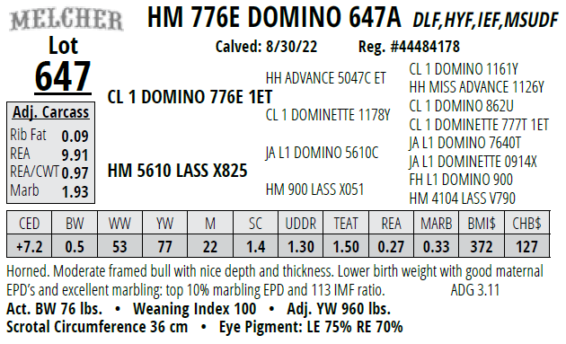 Lot #647 - HM 776E DOMINO 647A