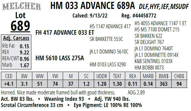 Lot #689 - HM 033 ADVANCE 689A
