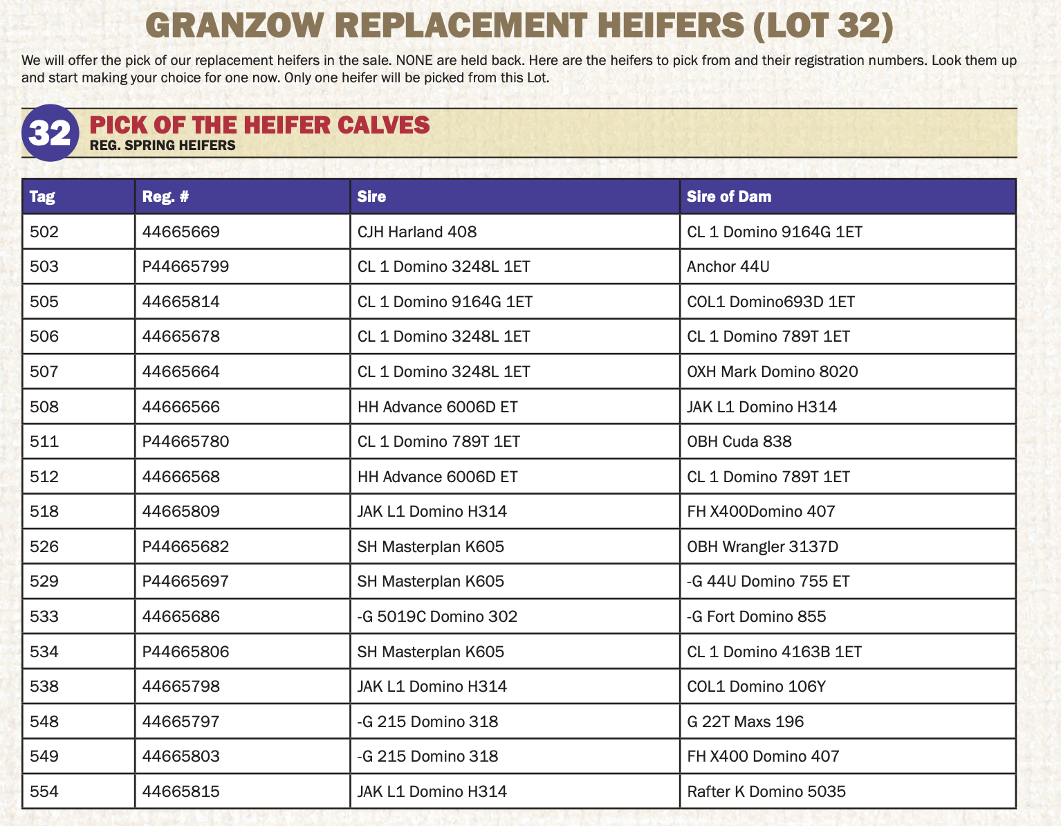 (Spring Pairs, Fall 3-in-1 Packages, Replacement Heifers)