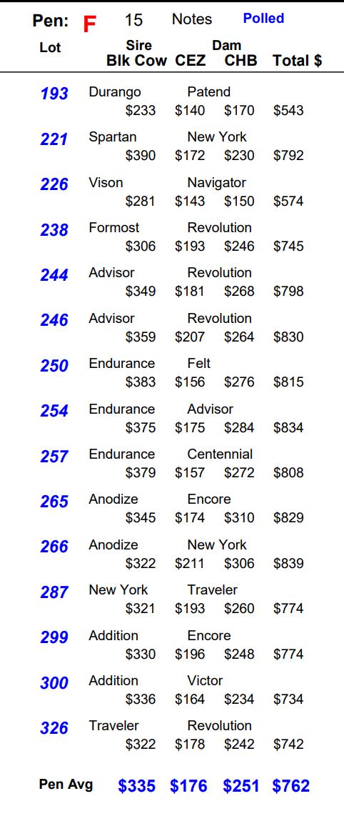 Lot #326 - COMMERCIAL HEIFER TAG 326