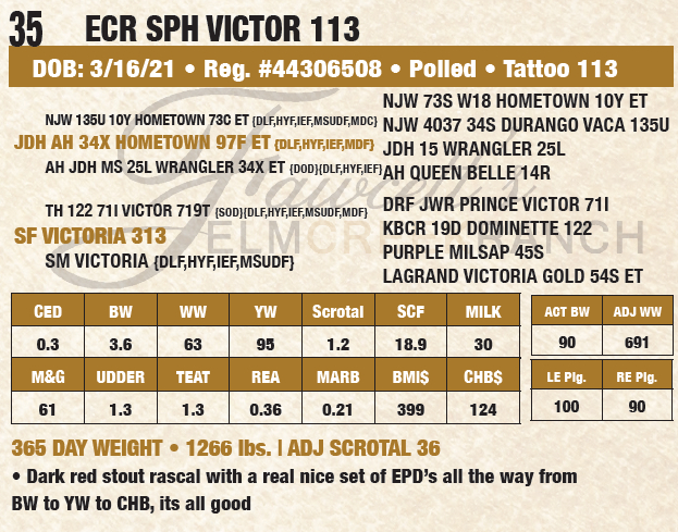 Fawcett's Elm Creek Rach The Rancher's Kind 2022 Bull Sale