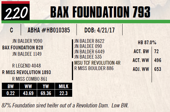 20 two-yr old Hereford Bulls 25 yearling Hereford Bulls 4 Registered Hereford Bred Heifers 50 Baldie Bred Females (bred to Special Focus) 50 Angus Bulls 40 Angus Heifers 15 yearling Black Hereford Bulls 14 Black Hereford Heifers 8 two-yr old Black Hereford Bulls