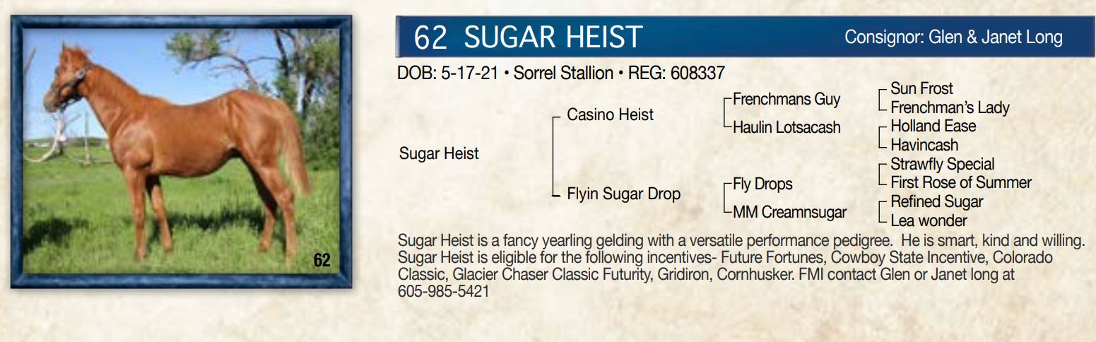 Offering 70 saddle horses and foundation bred colts. From some of South Dakota�s finest horsemen.